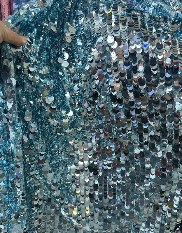 The texture of sequins fabric depends on the base material and the density, size, shape, and material of the sequins: