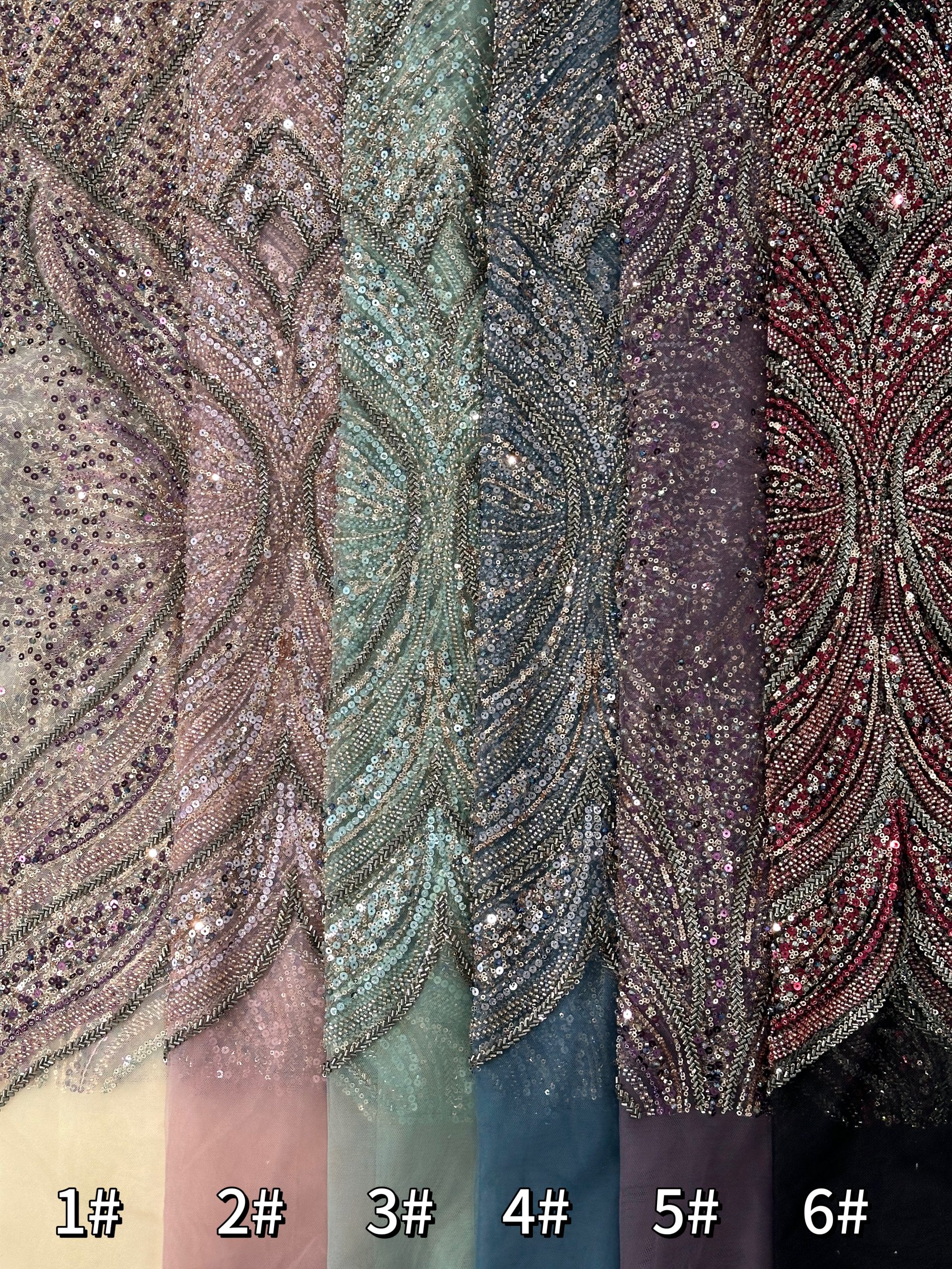 Currently, the trend in beaded fabric for wedding dresses is all about blending elegance with personality. While traditional white beads remain popular, more designers are experimenting with colored beads and even gemstone-like beads to add a touch of luxury. Customization is also on the rise, with gowns tailored to reflect the bride’s personal preferences and wedding theme, ensuring each dress is truly one-of-a-kind.
