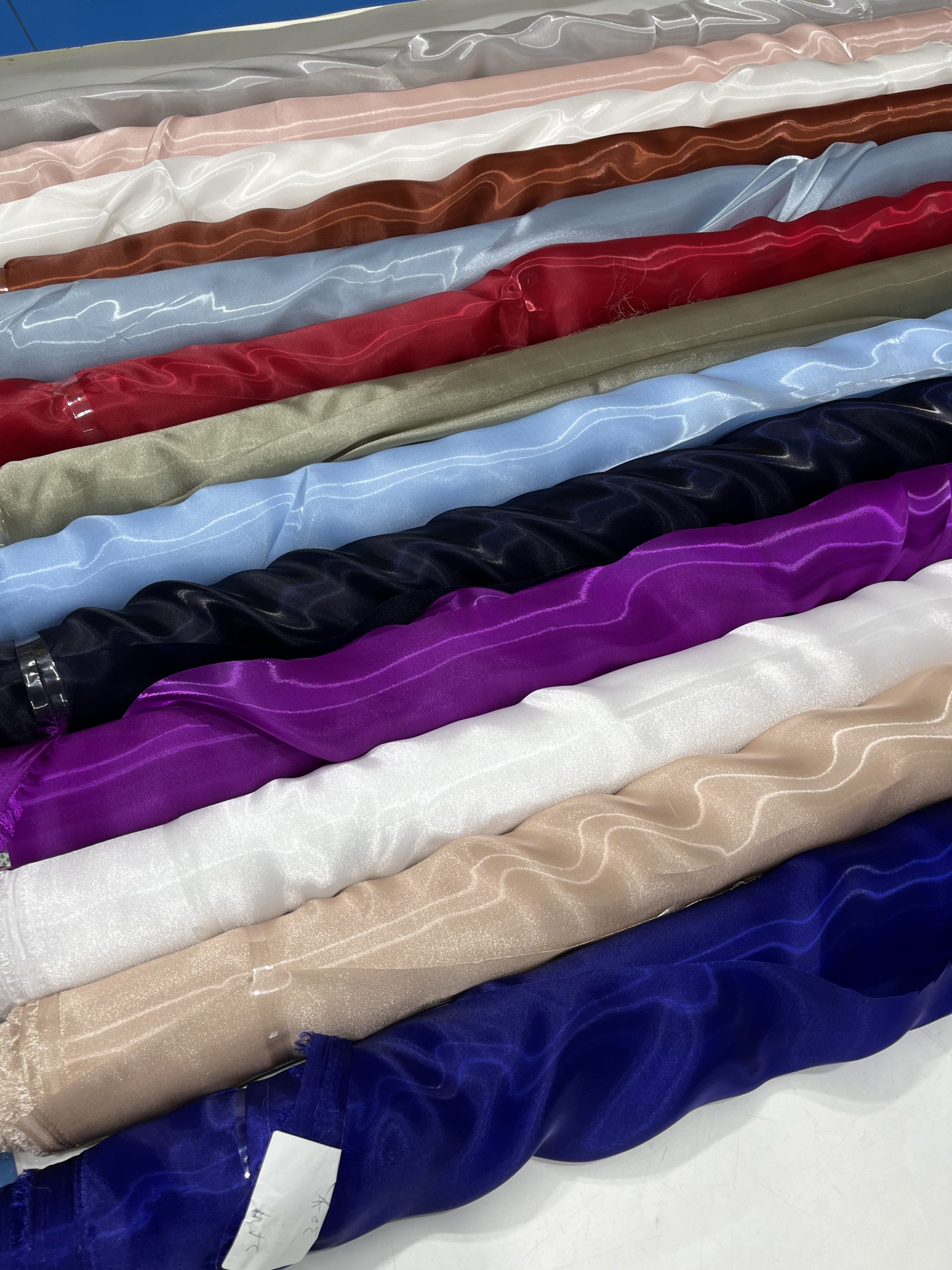 This silk organza fabrics is a type of shiny silk organza fabrics, it is perfect material for wedding dresses.The fabrics is suited to wedding dress such as Ballgown, mermaid dresses, mini or tea length, A-line ….The texture is blend of silk and nylon mostly,also has 100% polyester shiny mikado fabrics, it has variety of silk organza .