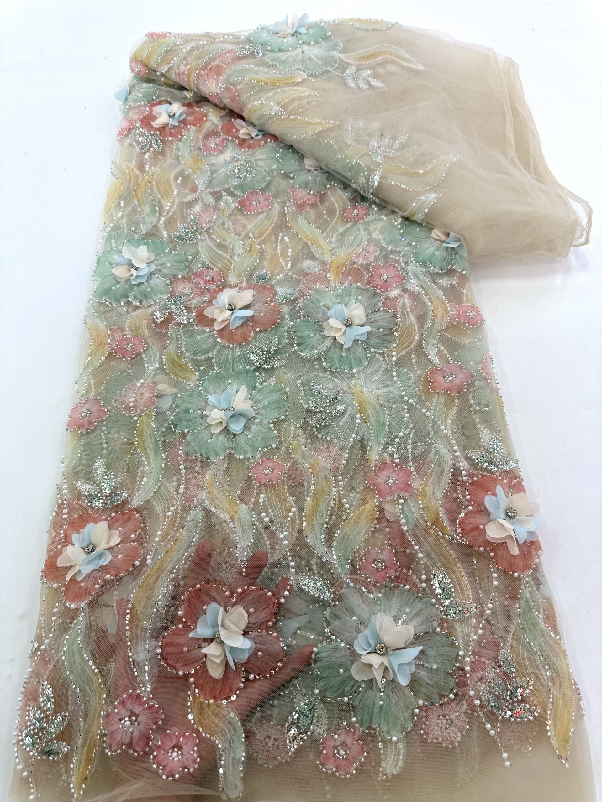 The inspiration for Beaded wholesale fabric suppliers online often comes from nature and art. Think of dew drops sparkling in the sunlight or shells glistening on the beach—these natural wonders inspire designers to create beaded patterns that bring a gown to life.