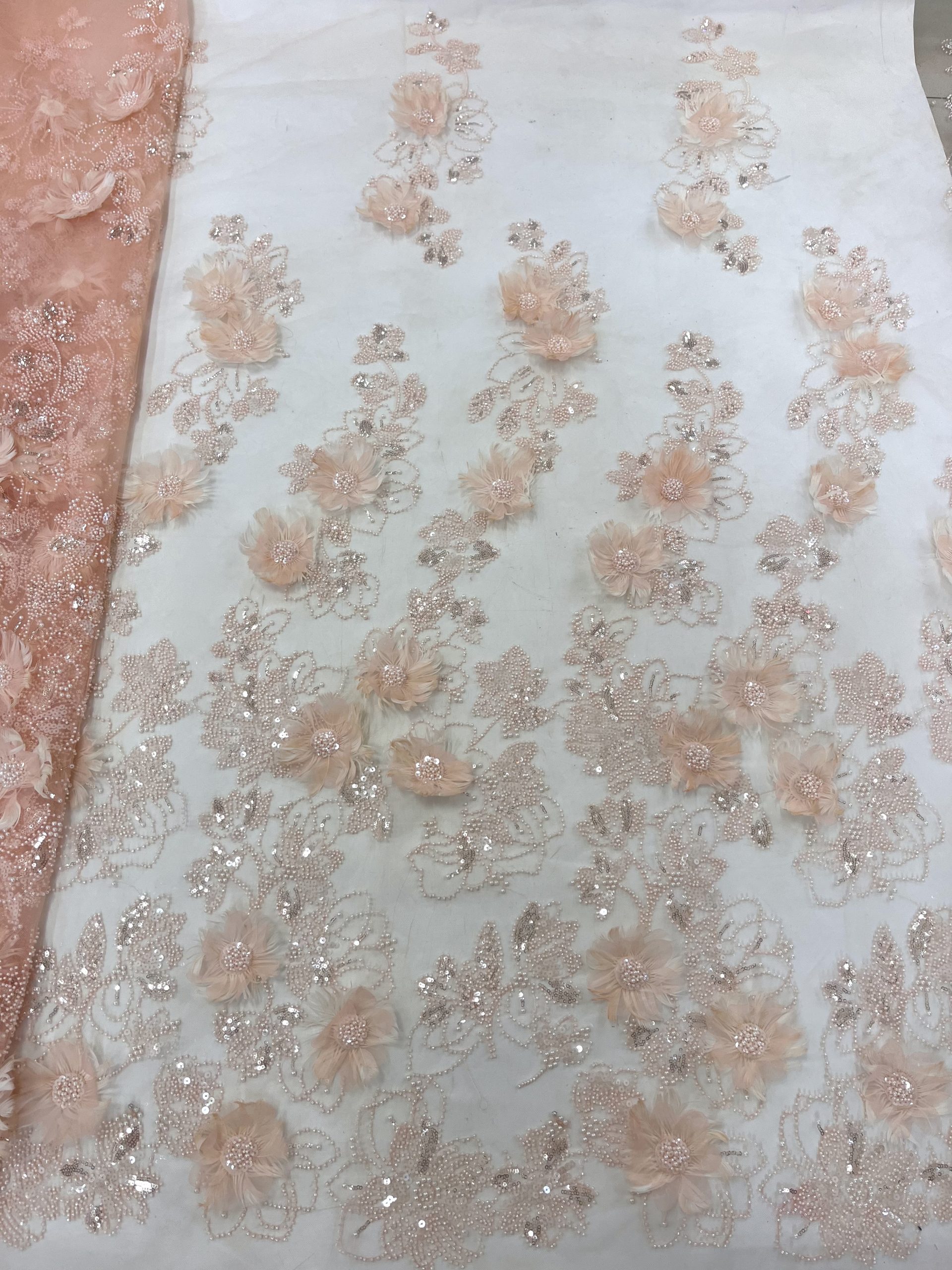 The main goal of using Flower 3d lace fabric and embroidered flower fabrics is to give wedding dresses extra depth and a dynamic look. Unlike flat flower decorations, Flower 3d lace have actual flower petals and intricate details that make the dress look more lively and dimensional. This not only makes the dress visually stunning but also adds a tactile quality that’s captivating when the bride moves.