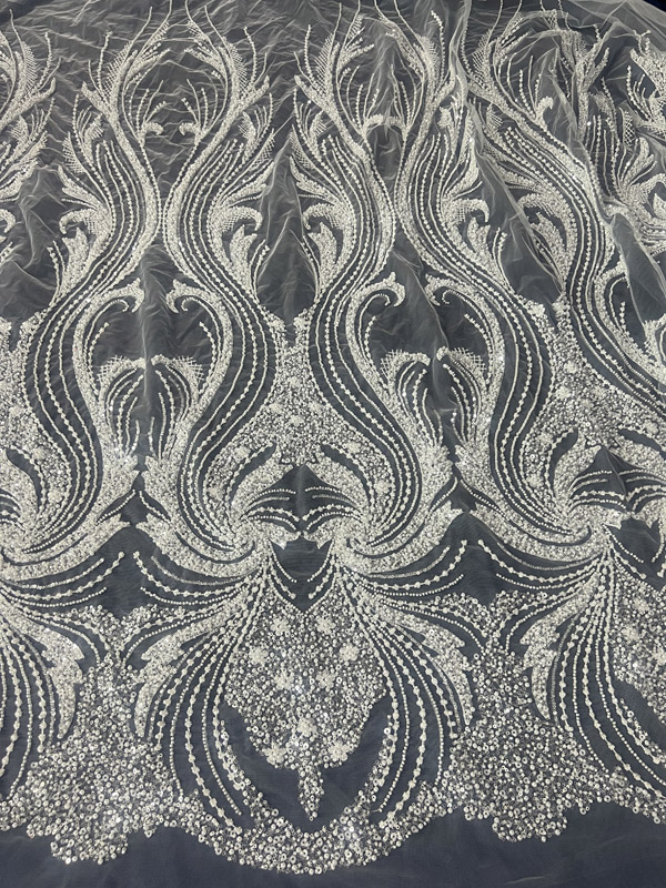 As a designer who specializes in Bridal Lace White Beaded Lace, I know how important it is to choose the right materials, and embellishments to bring a bridal gown to life. One of the most captivating elements in today’s bridal fashion, is the use of white beaded fabrics. These materials, with their delicate sparkle and intricate patterns, add a touch of glamour and sophistication to any wedding dress. In this blog, we’ll explore the inspiration behind white beaded fabrics, how they’re used in wedding dress design, and the current trends in this timeless fashion element.