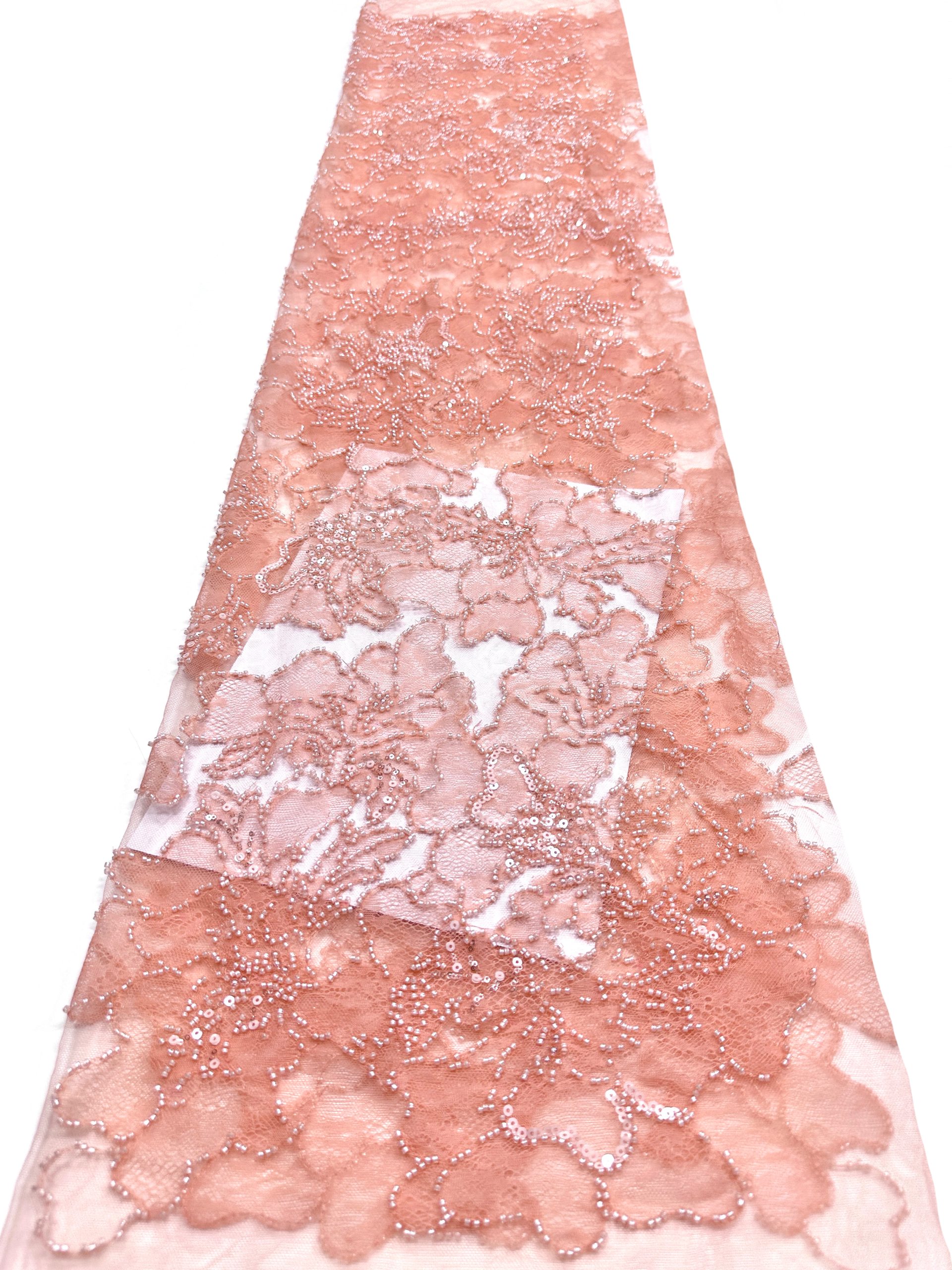 Hot Selling New Design Embroidered 3d Chantilly Fabric,Our premium beaded lace fabric is delicately crafted with exquisite embroidery, shiny sequins and elegant pearls. It features a soft, lightweight base with three-dimensional floral patterns and handmade beading details, bringing a romantic, luxurious and glamorous look to any garment.