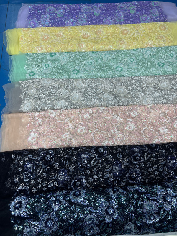 As an exceptional wedding dress designer, I love using sequin fabrics to create stunning wedding gowns. Sequin embroidered fabrics add a touch of luxury and uniqueness to wedding dresses with their sparkling visual effect and unique texture.