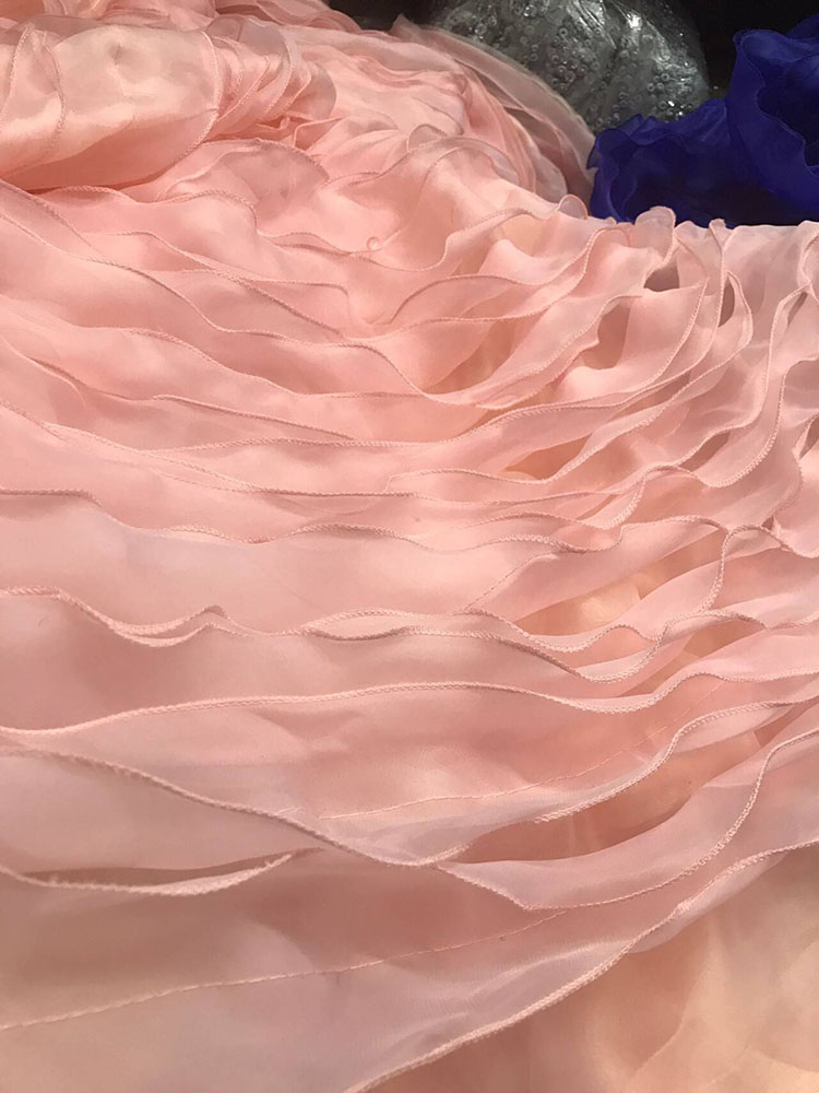 Creating ruffled dresses takes a lot of skill and high-quality materials. Ruffle Organza fabrics is a lightweight, see-through fabric with some stiffness, giving it a shiny and elegant drape—perfect for making ruffles.