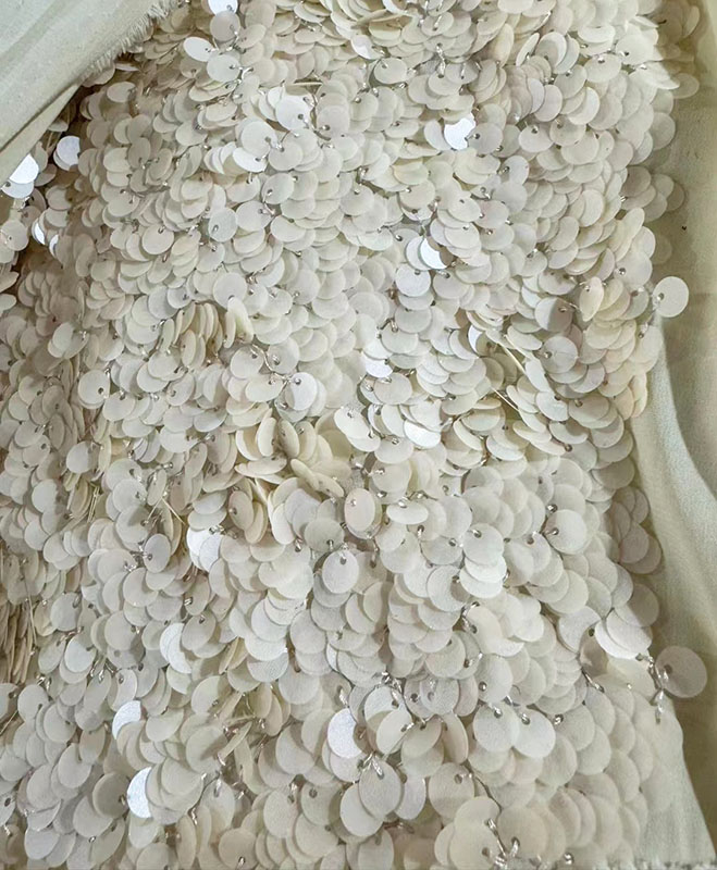 - Bridal Dresses: Sequin fabric is often used in bridal wear, particularly for brides who want a mix of traditional and contemporary. It’s perfect for adding subtle sparkle to a lace wedding gown, making the bride shimmer as she moves.
