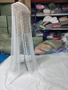 Currently, the trend in beaded fabric for wedding dresses is all about blending elegance with personality. While traditional white beads remain popular, more designers are experimenting with colored beads and even gemstone-like beads to add a touch of luxury. Customization is also on the rise, with gowns tailored to reflect the bride’s personal preferences and wedding theme, ensuring each dress is truly one-of-a-kind.