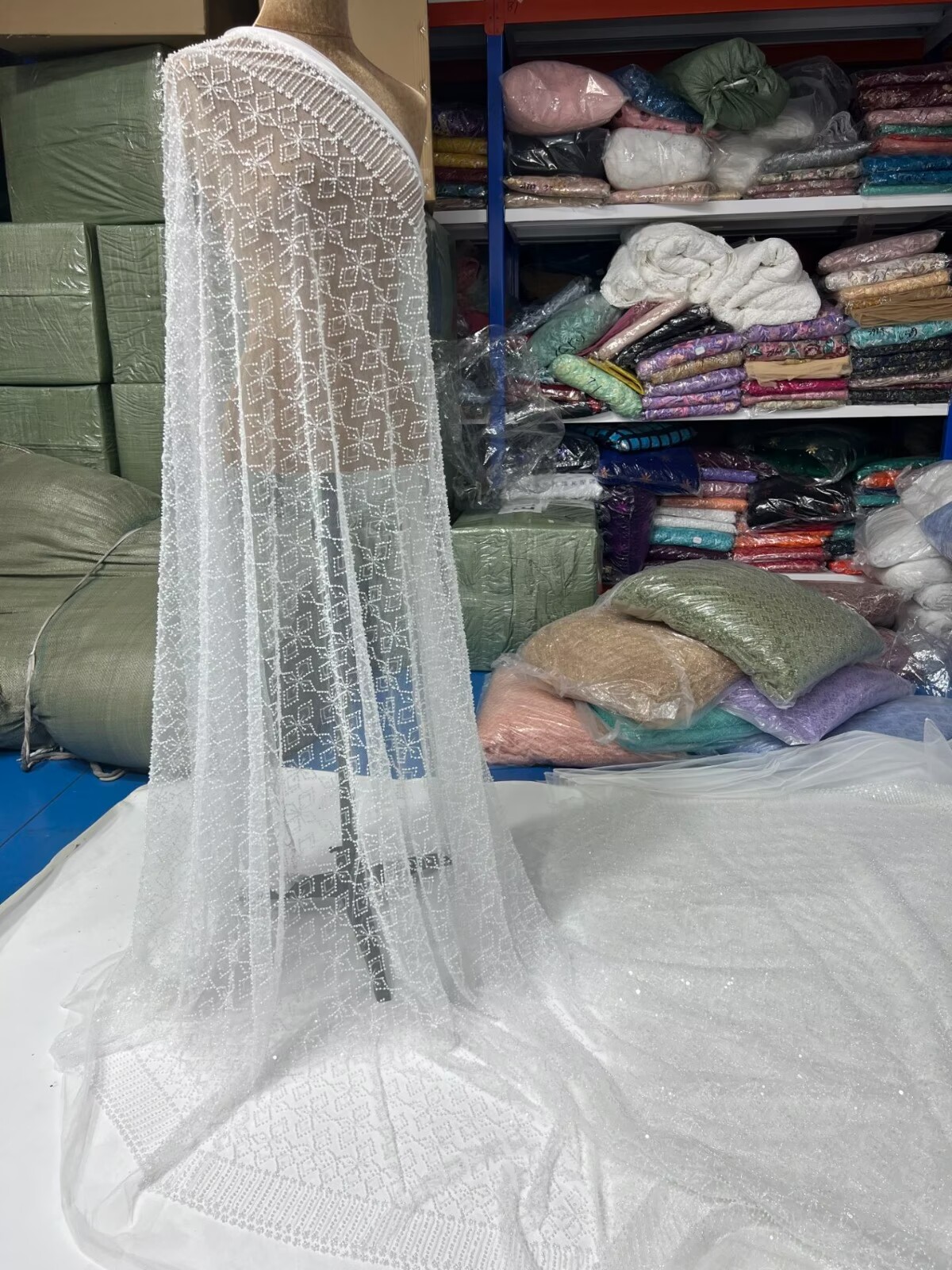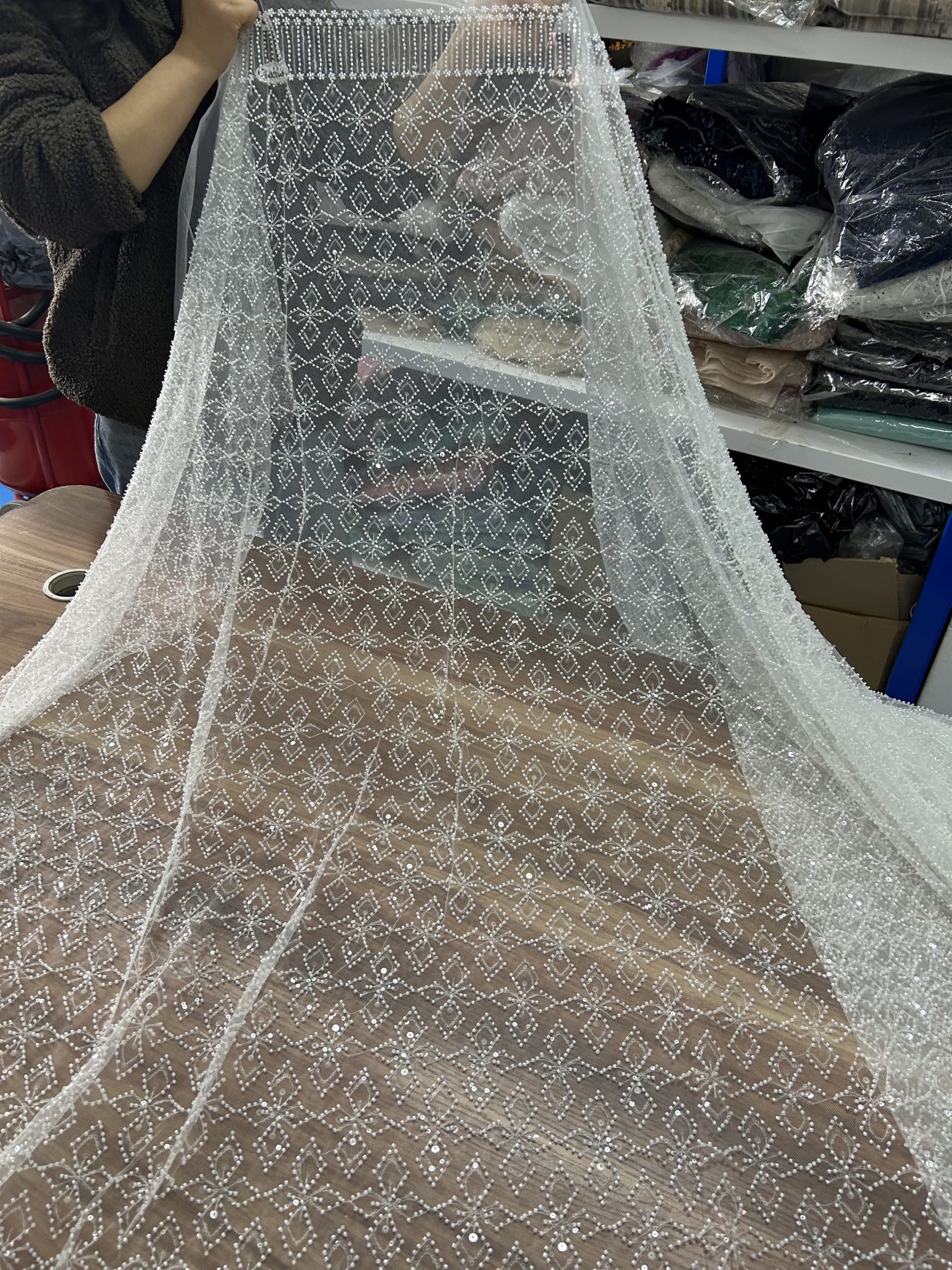 White beaded wedding fabrics wholesale : The Sparkling Choice for Wedding Dress Design